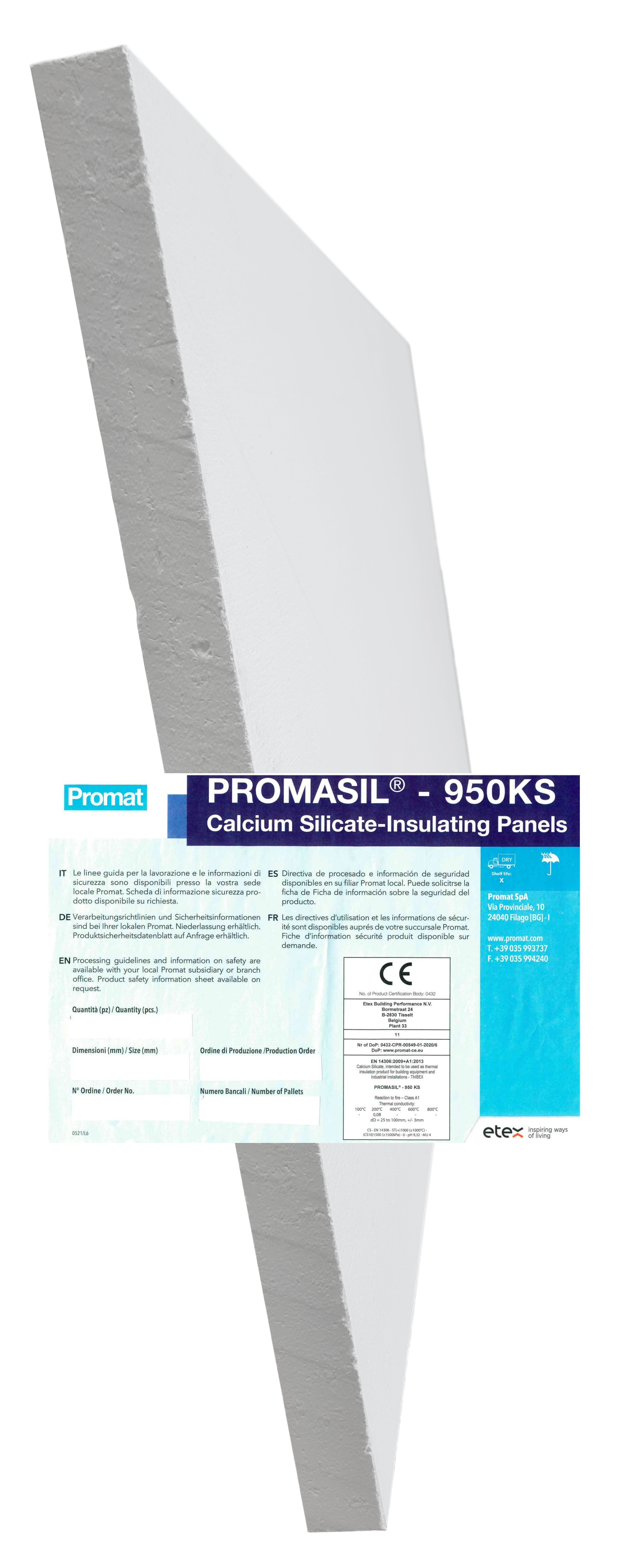 PROMASIL® 950-KS ist eine Wärmedämmplatte auf Basis von Calciumsilikat, asbestfrei und zugelassen nach EN 13229 für Kamine und nach DIN 188892 für Kachelöfen (Zulassung Nr.Z-43, 14-139).